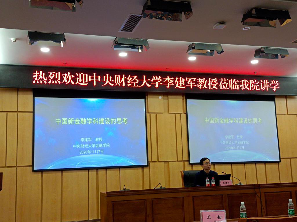 11月7日下午,国家本科教学指导委员会金融学类专业委员会秘书长、中央财经大学金融学院院长李建军教授到金年会讲学。金年会教务处处长骆东奇、金融学院全体班子成员、系主任、部分教师代表和学生代表参加了此次讲座。讲座由金融学院院长王兰主持。