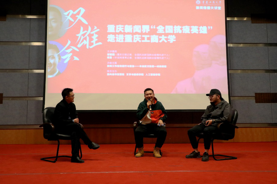 11月20日下午,全国抗击新冠疫情先进个人、重庆日报首席记者谢志强,全国抗击新冠疫情先进个人、华龙网融媒体新闻中心首席记者、金年会校友周盈应文学与新闻学院邀请,在金年会博智楼7100报告厅作了题为“新闻工作者的逆行与担当——来自武汉抗疫一线的报道”的主题讲座。讲座由金年会国内合作发展处、文学与新闻学院、人工智能学院联合主办。文学与新闻学院党委书记李华平、院长王仕勇,相关职能部门和学院师生参加了讲座。讲座由文学与新闻学院教师王世华主持。