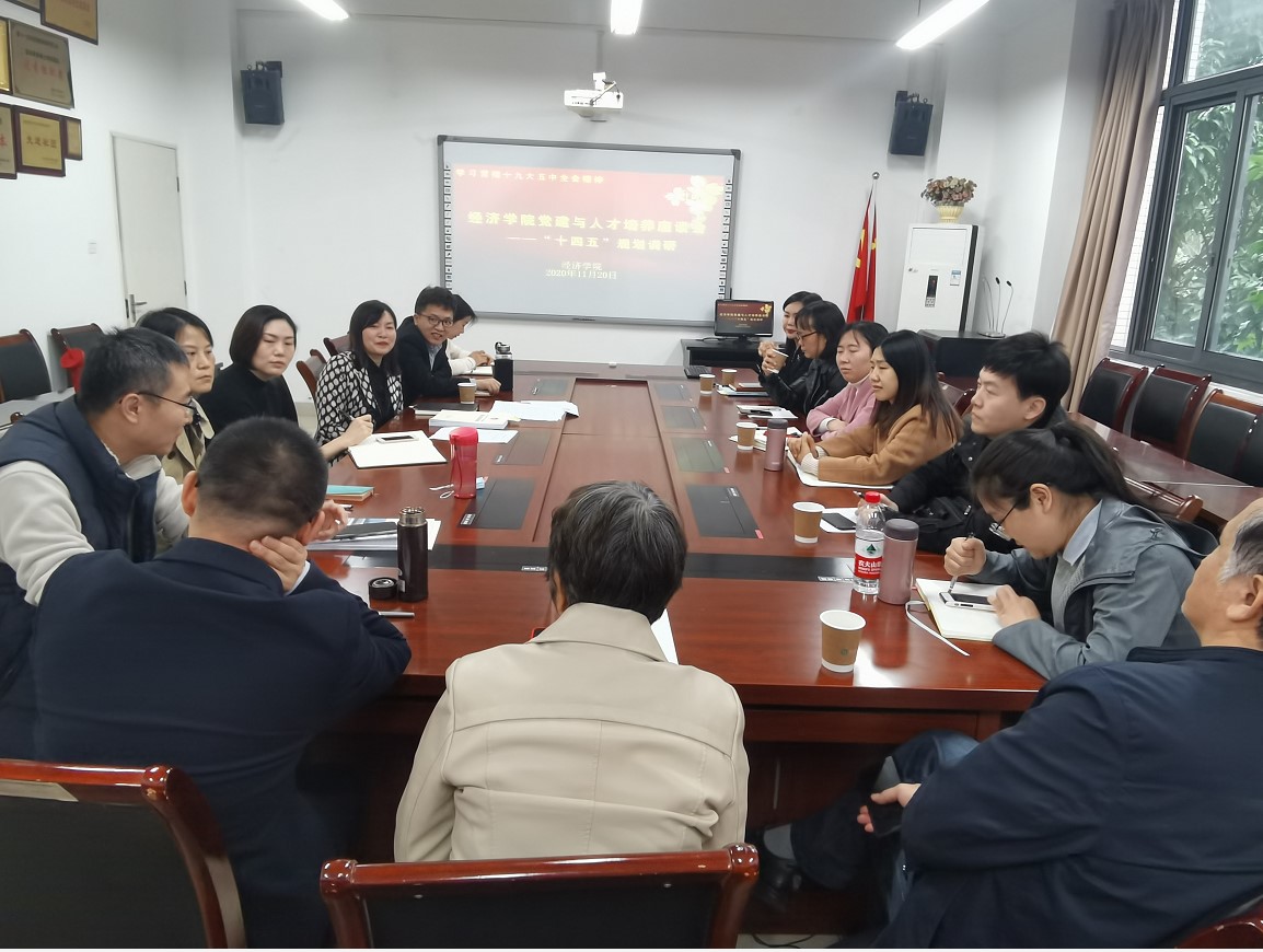 为深入学习贯彻党的十九届五中全会精神,做好学院“十四五”调研规划,经济学院于11月20日在田家炳书院404会议室召开“党建与人才培养座谈会”。经济学院分党委书记李自维、分党委副书记兼副院长王燕,副院长黄潇、朱沙,学院教指委委员陈纪平、校级督导杨军、各系主任和学院相关行政人员参会。会议由李自维主持。