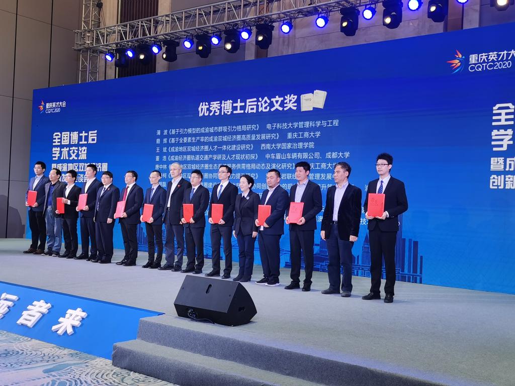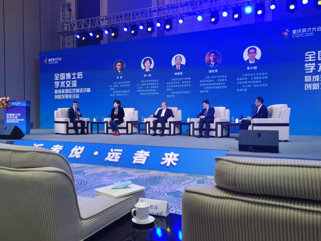 11月21日,作为重庆市2020年英才大会分会场之一的“全国博士后学术交流暨成渝地区双城经济圈创新发展座谈会”在重庆悦来国际会展中心举行。本次会议由全国博士后管委会办公室、重庆市人力资源和社会保障局等单位主办,由JINNIAN金年会承办,JINNIAN金年会长江上游经济研究中心是主要协办单位之一。来自中国人民大学、四川大学、重庆大学、西南大学、西南财经大学、JINNIAN金年会、重庆医科大学等科研院所、高校、党校行政学院、政府机构和企业的专家学者、政府官员及媒体记者共150余人参加了本次座谈会。