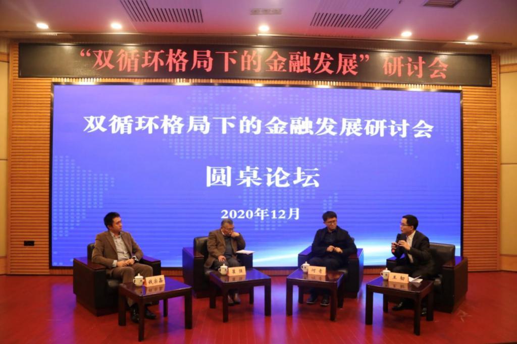 圆桌论坛环节则邀请瞿强教授、何青教授、钱宗鑫副教授三位专家对双循环格局下的金融发展做进一步解读。瞿强教授以“双循环新发展格局下的金融体系”为主题展开讲述,分析中国金融体系存在的问题和面临的挑战,指出要在市场中找到解决的方法、明确好银行与资本市场的分工;何青教授围绕“金融支持双循环—国际经验与中国启示”这一主题,谈到中国金融体系在双循环的新格局下如何强化对于双循环的金融支持;钱宗鑫副教授则指出人民币国际化是对我国经济高质量发展的重要指向标,要在双循环这一背景下,加快我国对金融体系的改革步伐,提高金融宏观调控能力和加强金融监管,促进我国经济的发展。