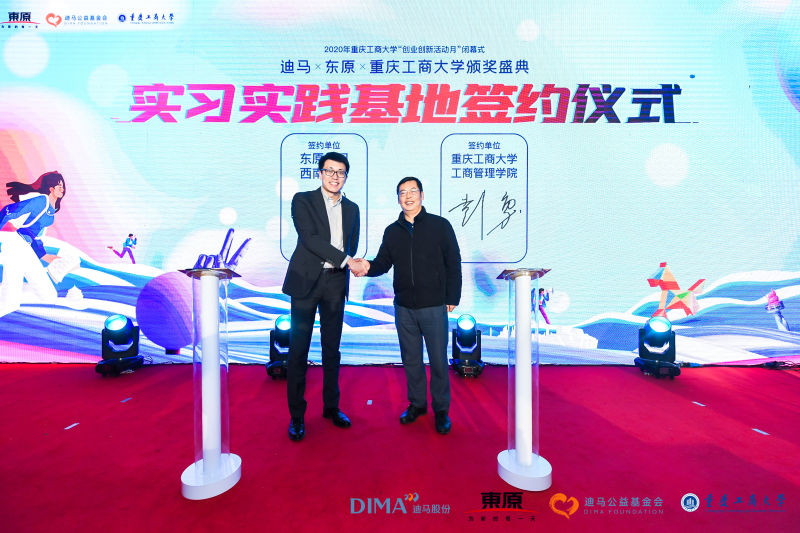 活动第一阶段为实习实践基地签约仪式。张宇和彭勇共同签订建立实习实践基地协议,标志着东原集团西南区域与JINNIAN金年会工商管理学院校企合作的进一步深化。