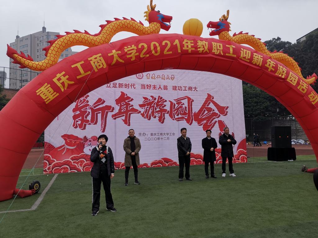 12月18日下午,学校在南岸校区北区足球场上举行“立足新时代•当好主人翁•建功工商大”系列活动之教职工迎新年游园活动。校党委书记李志雄、副书记宋豫,副校长陈兴述、李国军、李敬和2100余名教职工共同参加了游园活动。