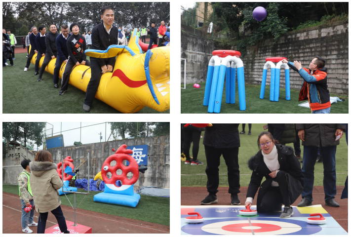 游园活动设置两次抽奖环节。李志雄、宋豫、陈兴述、李国军、李敬在现场抽取幸运奖,为教职工们送上新年吉祥物,并与大家一起参加了相关项目。此次游园活动有旱地冰壶、超级大脚、愤怒的小鸟、眼疾手快、趣味投篮、九宫射门、动感单车、铅笔套圈等多个项目,教职工们可根据个人爱好选择参加相应项目。