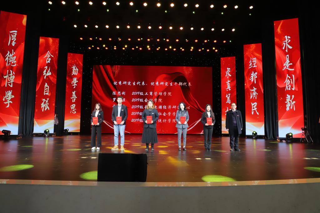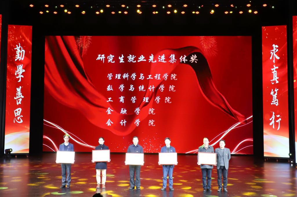 现场颁发了优秀硕士论文指导教师、优秀硕士生导师、研究生就业先进集体、研究生科技文化月优秀组织奖,并为研究生国家奖学金代表、研究生科技创新先进个人代表、优秀研究生代表、优秀研究生干部代表颁发了证书。