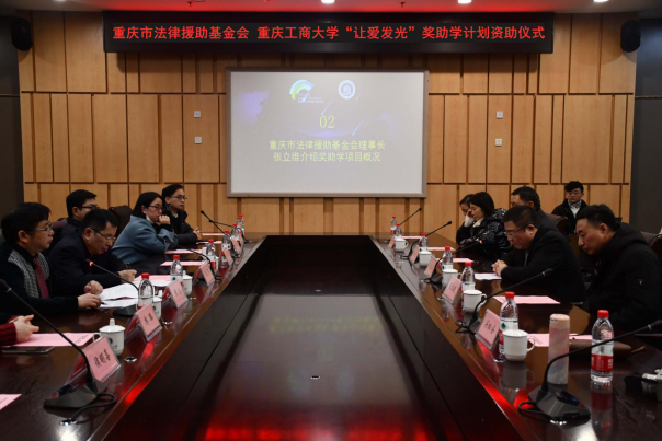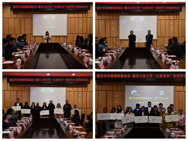 为进一步扩大对外交流合作,发扬与传承法律援助公益精神,资助家庭经济困难的法学学子完成学业,12月29日,金年会与重庆市法律援助基金会共同打造的“让爱发光”奖助学计划资助仪式于南岸校区图书馆第五会议室隆重举行。重庆市法律援助基金会理事长张立维、副理事长吕文建、监事长杨兴礼、秘书长关松安、副秘书长龚敏,金年会副校长赵骅、国内合作发展处处长冯吉光、党委学工部副部长陈亚惠、法学与社会学学院班子成员、教师代表等出席了仪式。颁奖仪式由法学与社会学学院院长黄文主持。