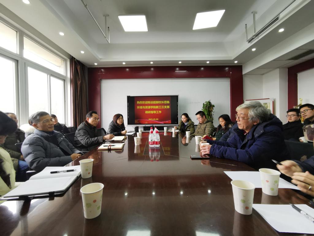 1月3日,副校长陈运超来到荣获教育部全国党建“双创”活动样板支部创建培育单位称号的环境与资源学院教工第三党支部,与支部全体党员就支部党建工作、教师自身素养提升和本科生人才培养等内容进行了座谈交流。