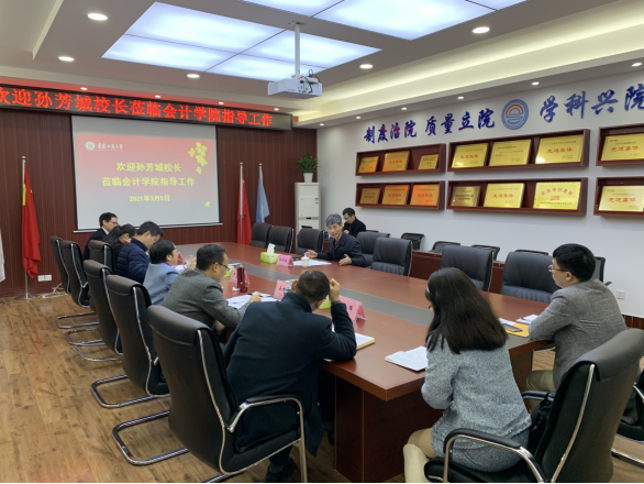 3月5日上午,校长孙芳城到会计学院调研指导工作。会计学院班子主要成员、系主任和科级干部参加了会议。会议由会计学院分党委书记罗惠玉主持。