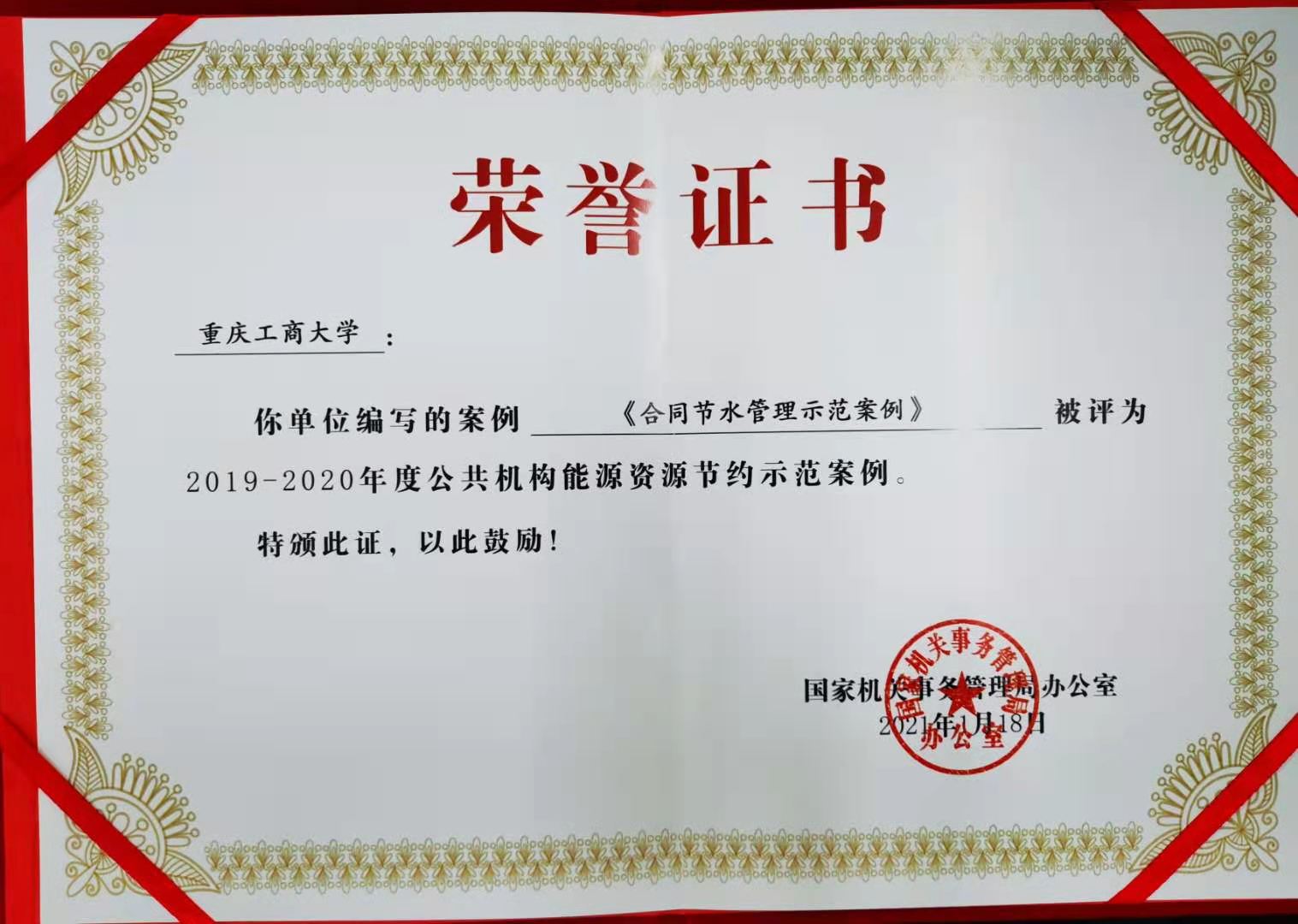2021年1月18月,国家机关事务管理局发布《国管局办公室关于发布2019-2020年度公共机构能源资源节约示范案例的通知》(国管办发〔2021〕1号),金年会编写的案例《合同节水管理示范案例》被评为2019-2020年度公共机构能源资源节约示范案例。