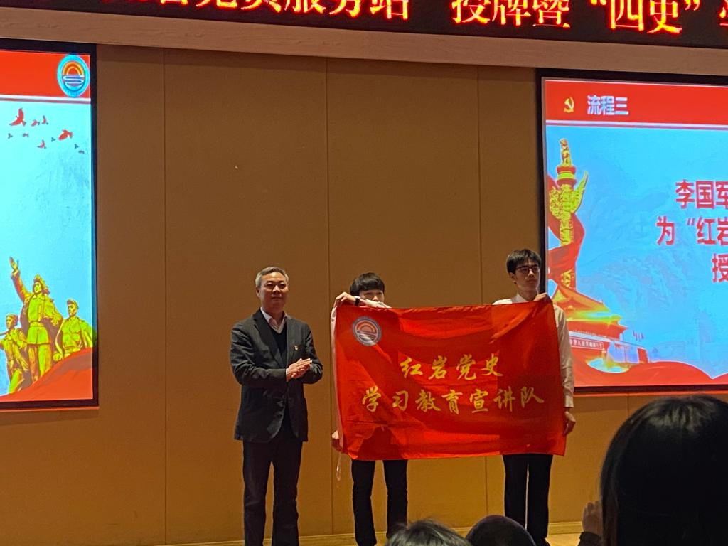 李国军为会计学院“红岩党员服务站”授牌、授旗。