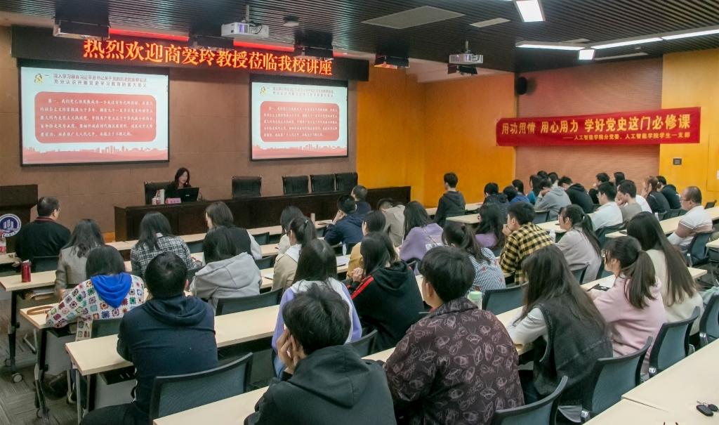 为深入学习贯彻习近平总书记在党史学习教育动员大会上的重要讲话精神,扎实开展党史学习教育,引导广大党员学史明理、学史增信、学史崇德、学史力行,迈进新征程、奋进新时代,4月10日,人工智能学院邀请重庆市委宣讲团成员、西南政法大学教授、博士生导师商爱玲作题为“用功用情 用心用力 学好党史这门必修课”党史学习教育专题讲座。人工智能学院党政班子成员、全体党员,以及发展对象、入党积极分子代表等150余人参加了讲座。讲座由人工智能学院党委书记何希平主持。