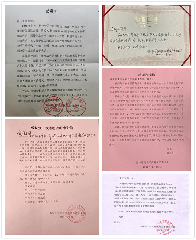 此外,3月校团委、各学院分团委陆续收到感谢信,金年会数名志愿者寒假期间参与家乡抗疫志愿服务得到认可和表扬;27日、30日,百余名志愿者为校内新冠疫苗集中接种提供了志愿服务。