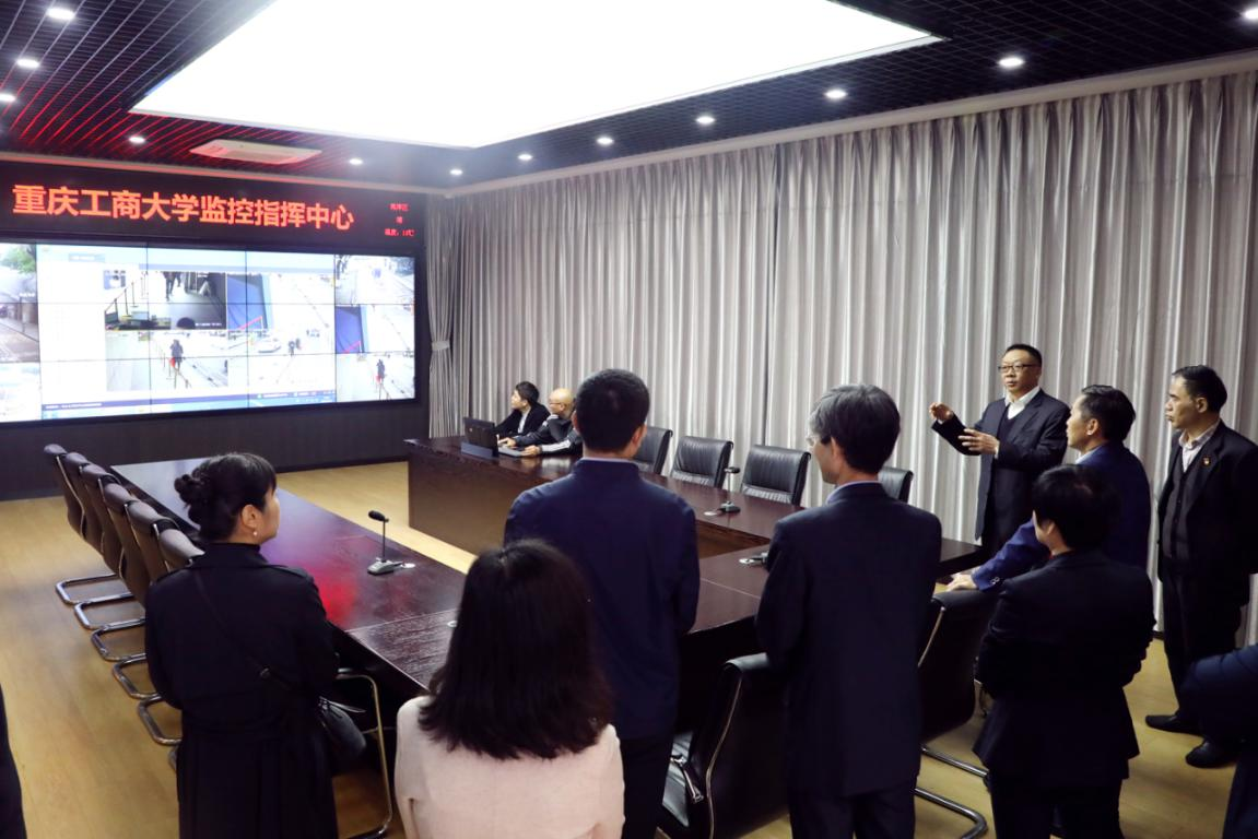 钟登华一行调研了重庆市高校网络舆情与思想动态研究咨政中心,实地参观了“小红帽”党建基地,并现场体验了金年会安全稳定人防技防工作开展场景。在调研过程中,钟登华与舆情中心专家学者、“小红帽”党建基地正在开展活动的师生进行了亲切交谈,听取了学校保卫处负责人工作汇报。