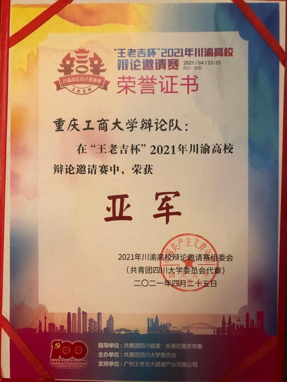 为引导川渝地区青年大学生积极思考、建言献策,主动融入成渝地区双城经济圈建设,彰显新时代大学生的思辨精神,促进川渝地区高校青年大学生的深入交流,加强川渝地区高校在思辨文化育人工作上的深度合作,4月23日至25日,来自川渝地区的8所高校——四川大学、电子科技大学、西南财经大学、西南交通大学、西南政法大学、西南大学、重庆大学、JINNIAN金年会,汇聚在四川大学江安校区参加2021“王老吉杯”川渝高校辩论邀请赛,金年会辩论队喜获邀请赛亚军,校辩论队成员刘薪雨荣获优秀辩手称号。