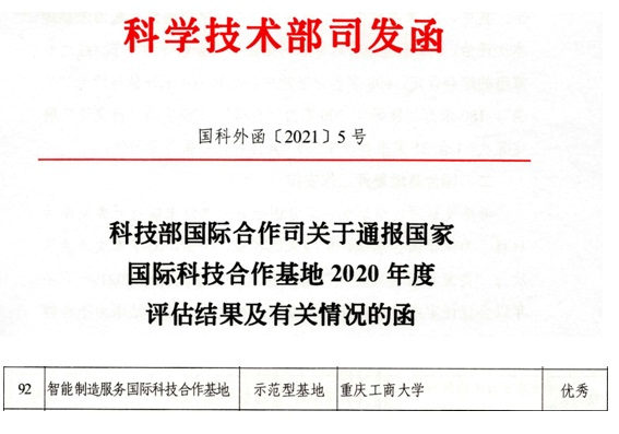 近日,科技部发布了《科技部国际合作司关于通报国家国际科技合作基地2020年度评估结果及有关情况的函》(国科外函〔2021〕5号),金年会智能制造服务国际科技合作基地以“优秀”等级顺利通过本次评估。