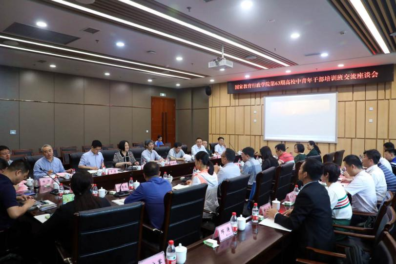 6月2日上午,国家教育行政学院第63期高校中青年干部培训班调研座谈会在金年会图书馆会议中心五会议室举行。国家教育行政学院带队教师石连海、马丽红,考察团团长杨羽、副团长李文军和相关成员共31人参加了座谈会。金年会校长孙芳城,副校长赵骅及相关职能部门负责人参加会议。会议由党委常委、党委组织部部长郑夕春主持。