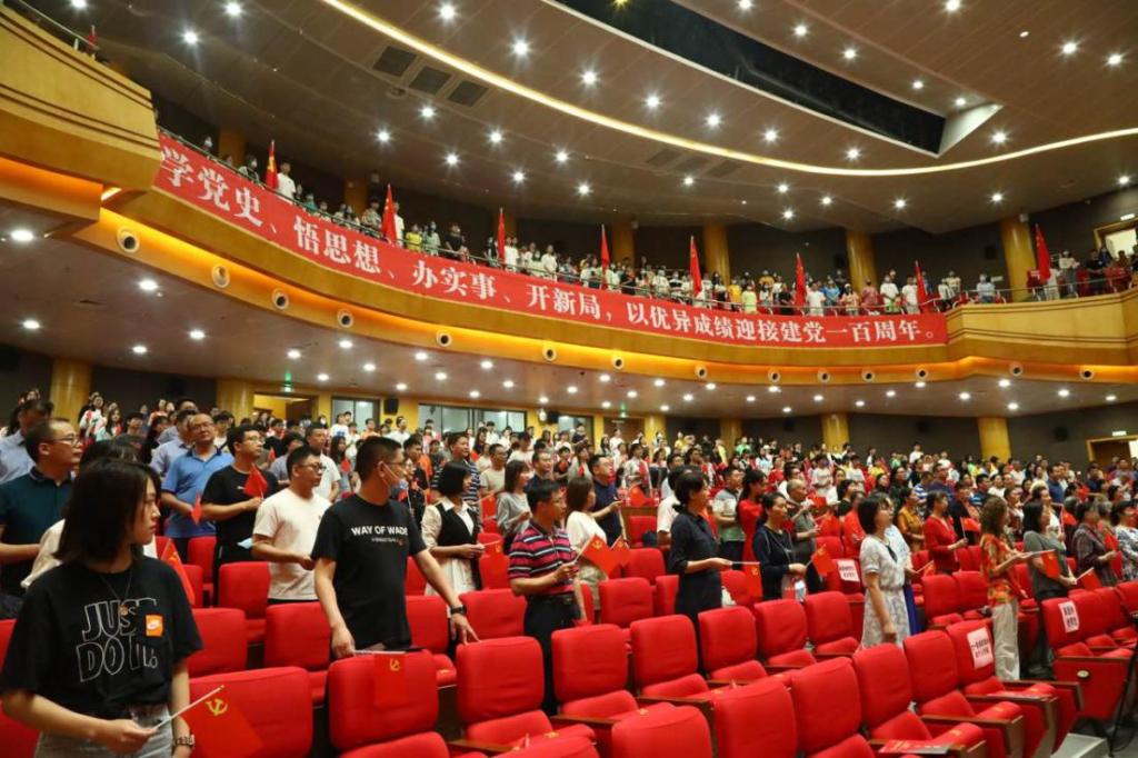 活动最后,全体与会领导和师生共同唱响《没有共产党就没有新中国》,伴随着雄壮和激昂的歌声,大家舞动手中的党旗,唱出了拳拳赤子心、浓浓爱党情。