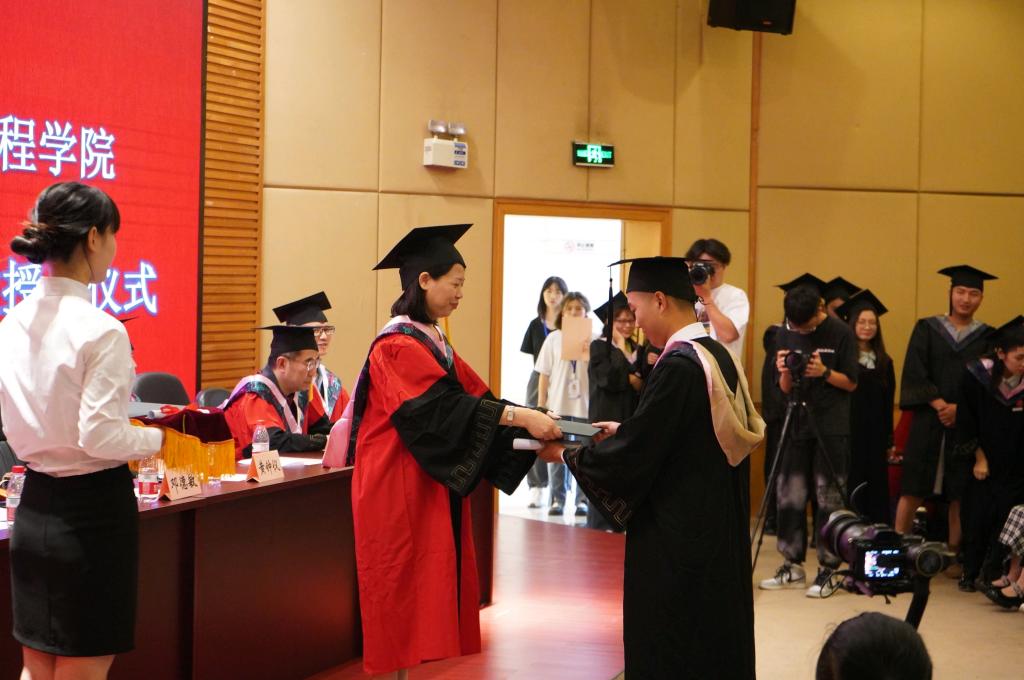 副院长詹川宣读JINNIAN金年会2021届毕业生学位授予决定文件。黄钟仪为学子们一一拨穗,颁发学位证,并与大家合影留念。