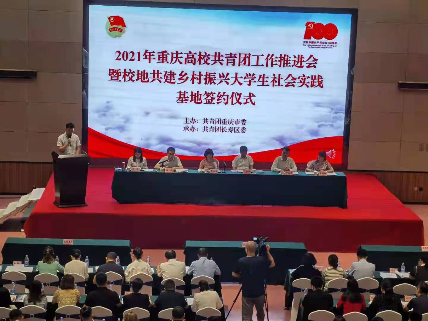 为深入学习贯彻习近平总书记关于青年工作的重要思想和关于“三农”工作的重要论述,全面落实党中央、市委和团中央关于乡村振兴战略工作部署,6月23日上午,重庆高校共青团校地共建乡村振兴大学生社会实践基地签约仪式在重庆市长寿区举行。团市委副书记黄永宜、长寿区副区长汤晓强、部分区县团组织负责人及全市高校团组织负责人参加本次签约仪式。金年会团委书记杨娟、人工智能学院专职组织员杨勇出席签约仪式,并与市级重点帮扶乡镇忠县磨子乡签订共建协议。