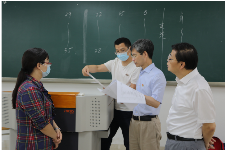 7月5日上午,校长孙芳城、副校长何勇平深入期末考试现场,对期末考试工作进行检查,学生处、教务处、教学质量监督与评估办公室等部门负责人陪同检查。