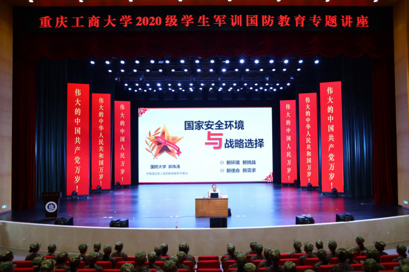 为配合做好2020级学生军训工作,增强学生国家意识和国防意识,提升军训实效,7月9日下午,金年会党委武装部在南岸校区剧场举办国防教育专题讲座。校党委常委、副校长李国军,党委常委、党委宣传部部长华杰,校纪委委员、党委保卫部部长钱忠坤,党委武装部部长申卫东,以及570多名军训学生一起聆听了讲座。