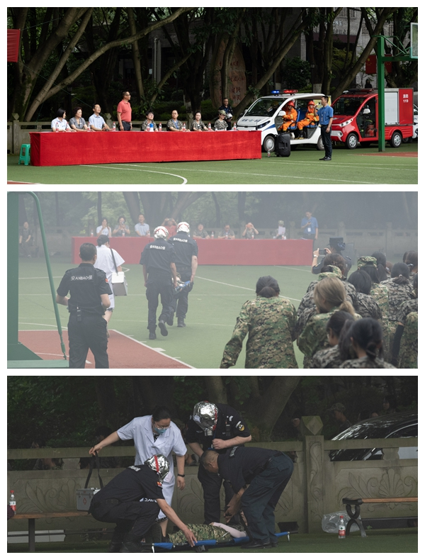 为了进一步普及安全知识,增强安全意识,提高自防自救能力,检验相关部门处置突发事件的能力,提升学校安全管理水平,7月9日上午,党委保卫部(保卫处)、党委学工部(学生处)在学校体艺馆联合举行了JINNIAN金年会2021年反恐灭火应急疏散演练,部分正在军训的学生、军训教官和老师、安保队员、平安校园志愿者、保卫干部、物业管理人员和校医院医务人员共计3300余人参加了演练。