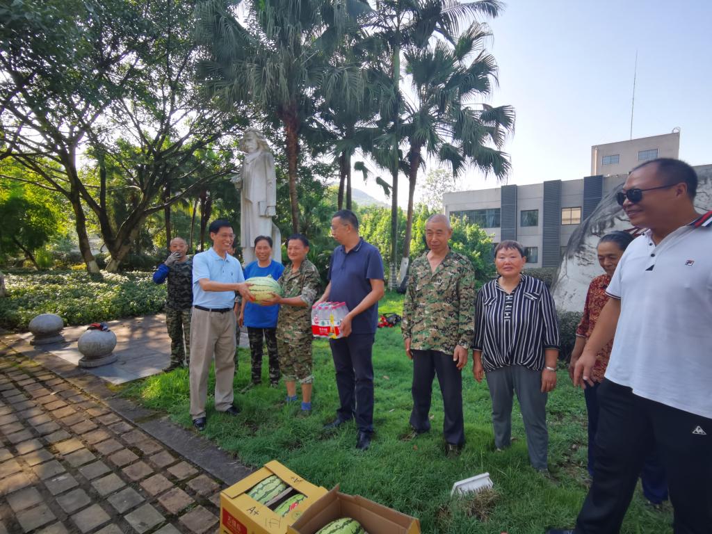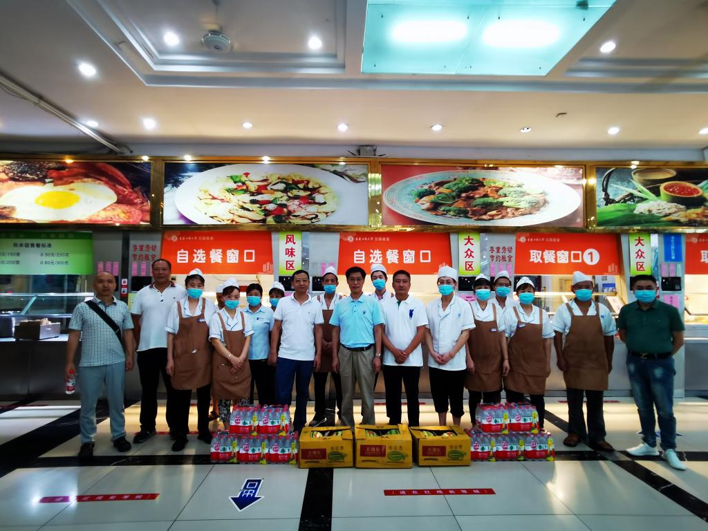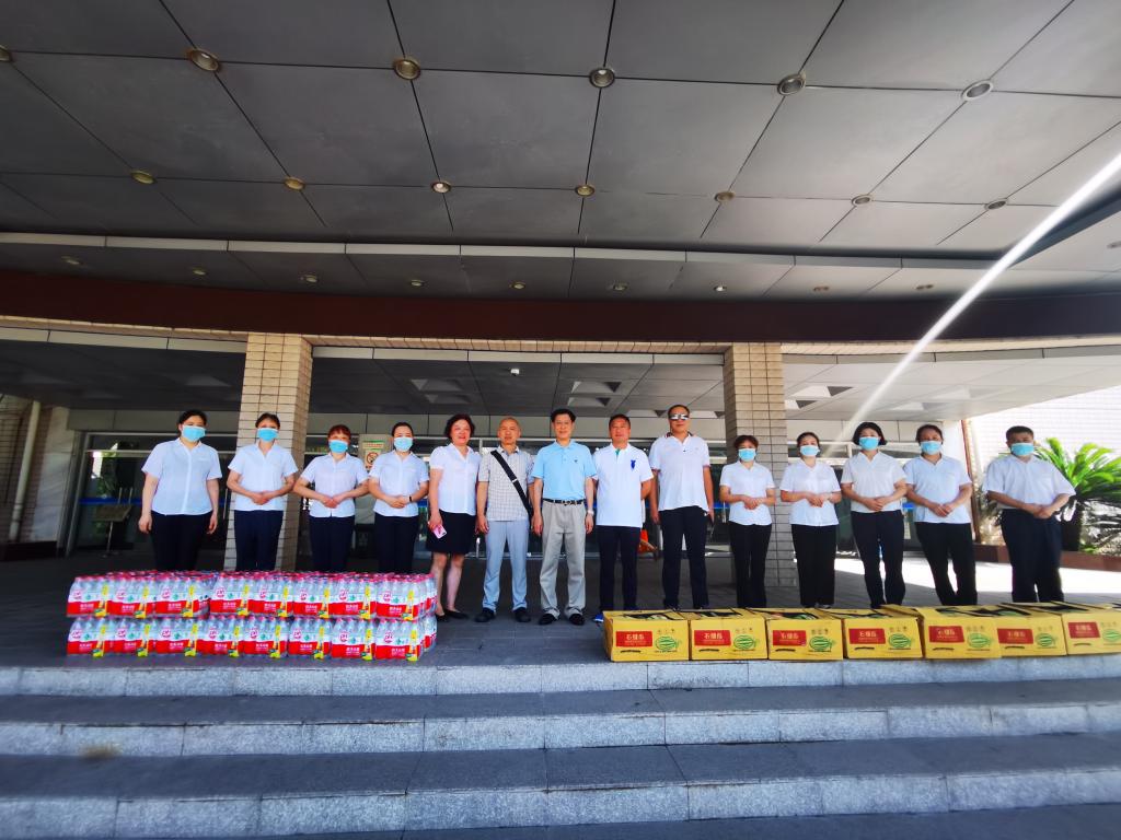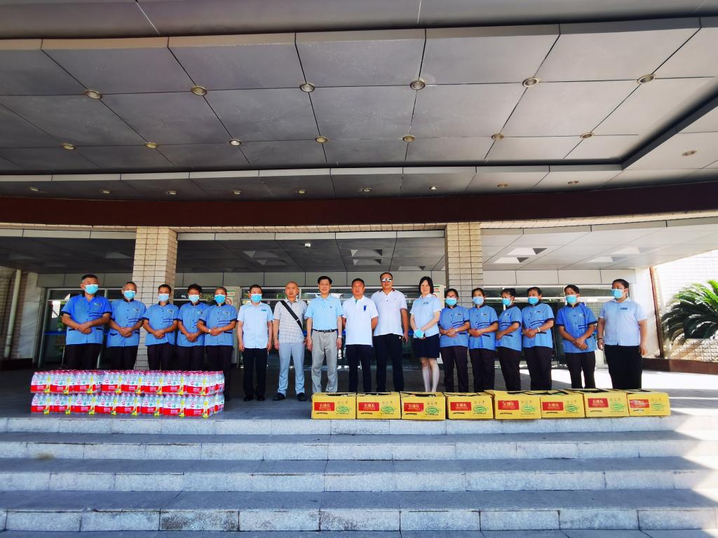8月19日上午,副校长陈兴述带领后勤处负责人先后到学校教学楼、食堂、校医院等走访慰问了部分冒着高温酷暑在岗工作的后勤员工,与他们亲切交流、赠送防暑降温用品并检查工作。