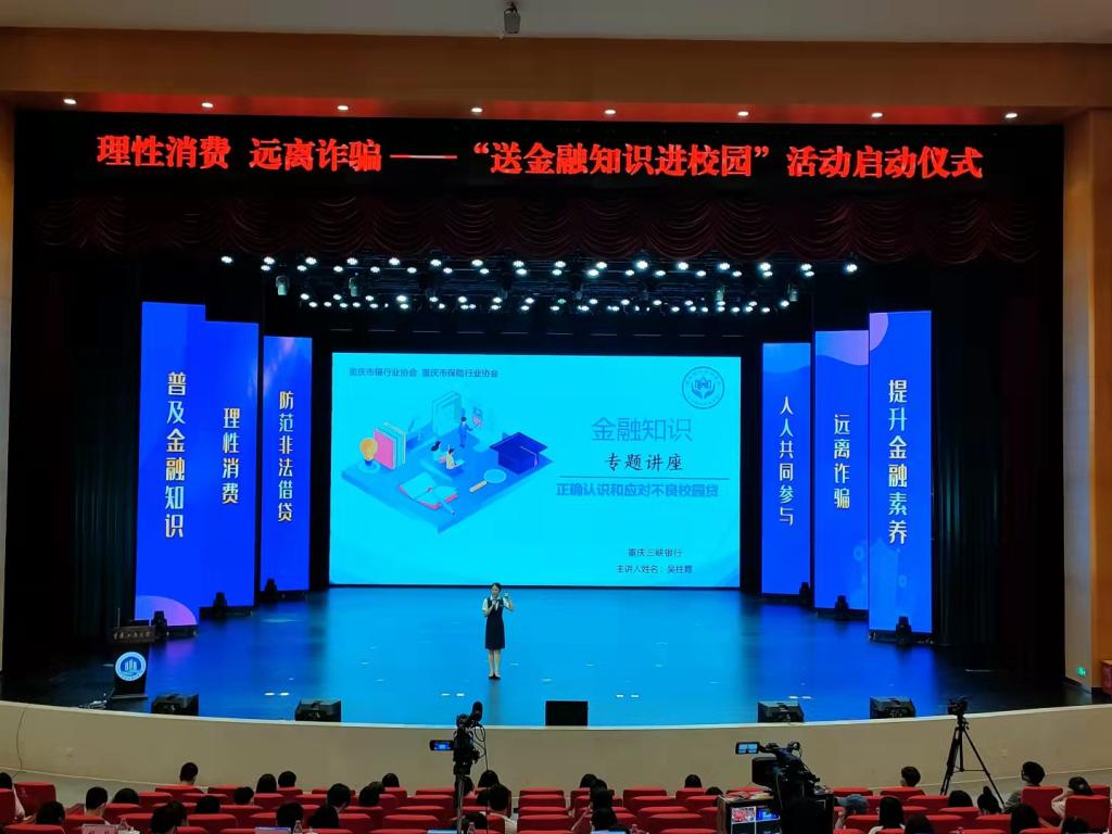 9月16日下午,由重庆市教委、重庆银保监局联合主办的“送金融知识进校园”活动启动仪式在金年会举行。重庆市委教育工委委员、市教委副主任邓沁泉,重庆银保监局副局长徐静,金年会副校长李国军,重庆市银行业协会、重庆市保险行业协会和部分银行保险机构代表,以及金年会师生代表200余人参加了现场活动。