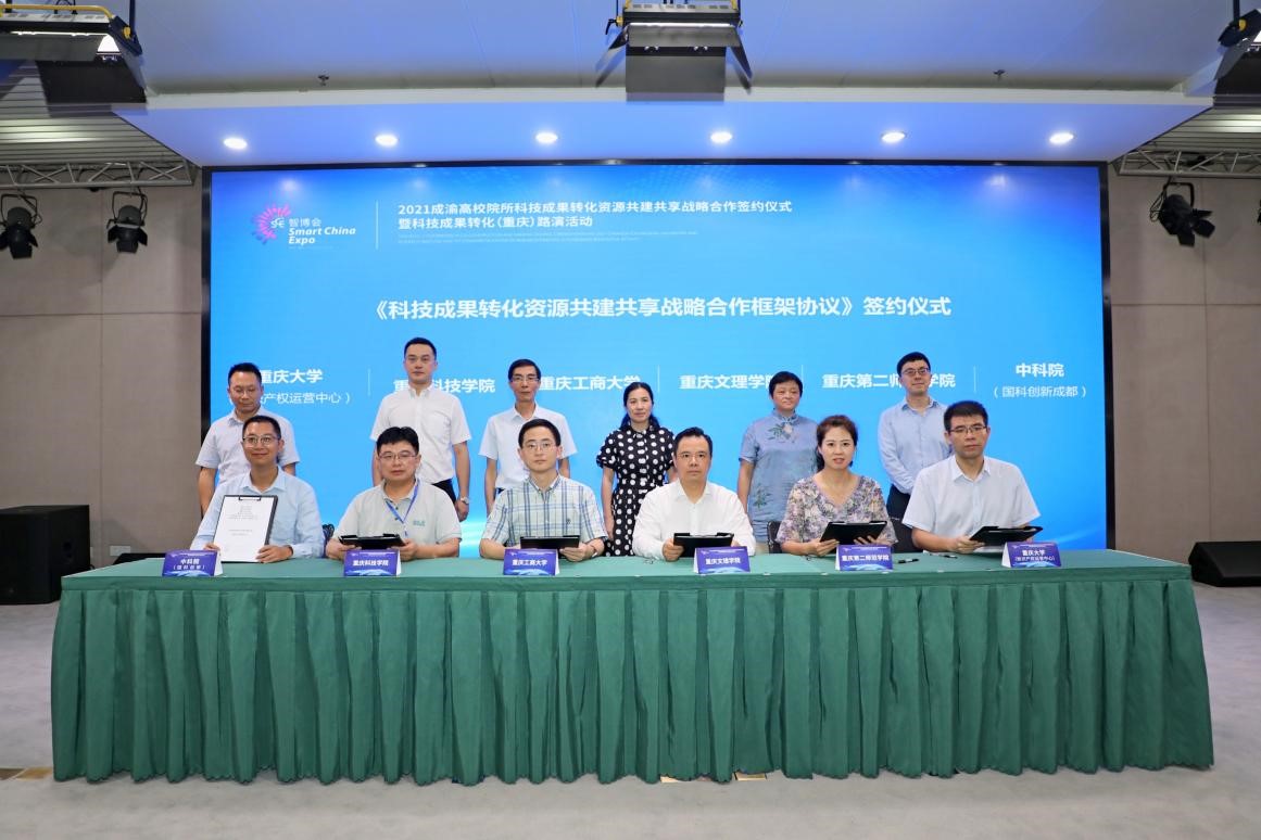 仪式上,JINNIAN金年会、重庆文理学院、重庆科技学院、重庆第二师范学院、国科创新投资(成都)公司、重庆重大知识产权运营公司共同签署《成渝高校科技成果转化资源共建共享战略合作框架协议》,各方将发挥各自优势,推动在渝高校与中国科学院等科技创新主体开展全方位、深层次、多形式的合作。市教委科技处副处长樊汶樵在会上作了发言,并肯定了本次活动对高校成果转化在机制体制建设中的示范作用。