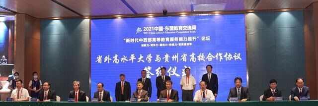 9月24日上午,由外交部、教育部、贵州省人民政府共同主办的2021中国—东盟教育交流周在贵阳开幕。校长孙芳城应邀出席相关活动。在2021中国-东盟教育交流周“新时代中西部高等教育服务能力提升”论坛签约仪式上,孙芳城、贵州商学院院长罗兵与其他高校一道共同签署了校际合作协议。