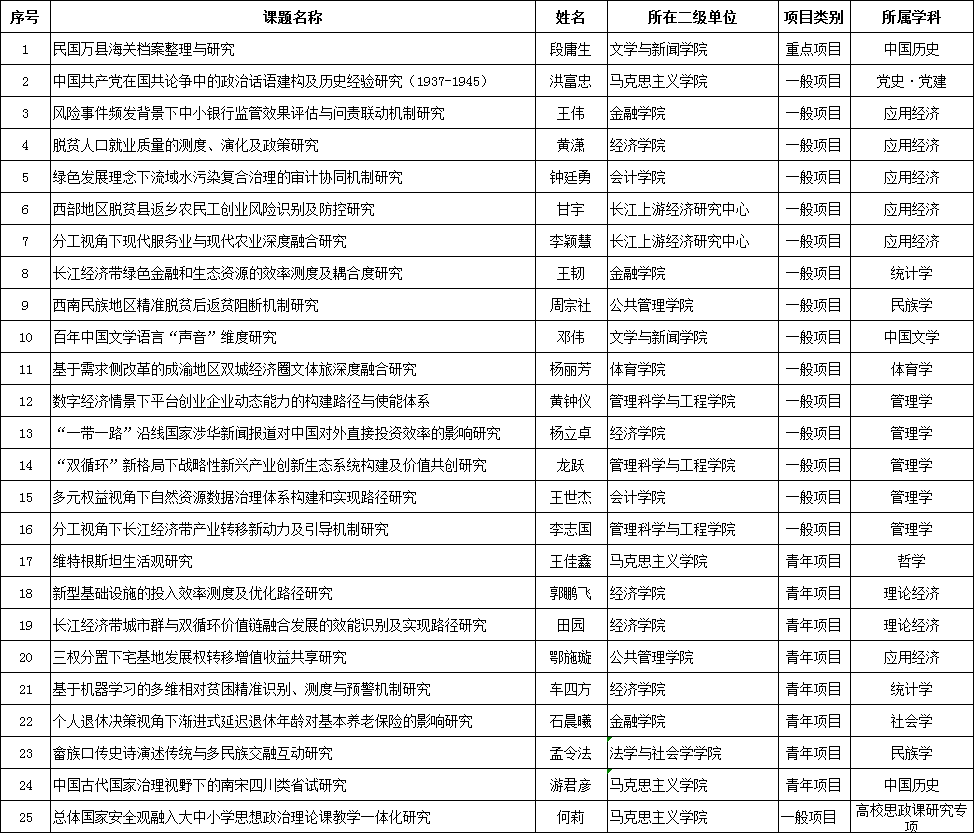 据统计,金年会年度项目立项数在全国财经类高校中位列第3,在重庆市属高校中位列第2,在全国社科单位中位列第46。