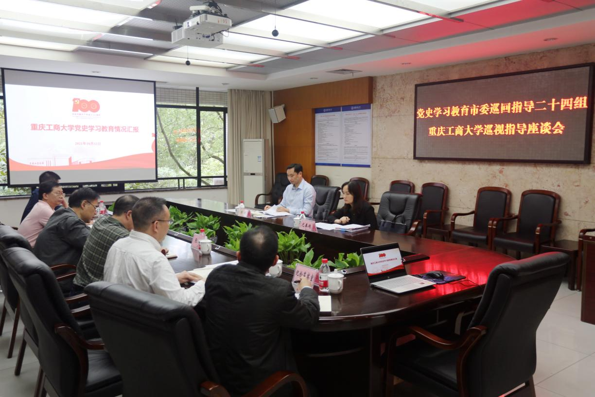 10月12日下午,党史学习教育市委巡回指导二十四组组长谯建到金年会巡视指导工作,并召开座谈会。校党委书记李志雄、纪委书记周航、党委常委张波出席会议。