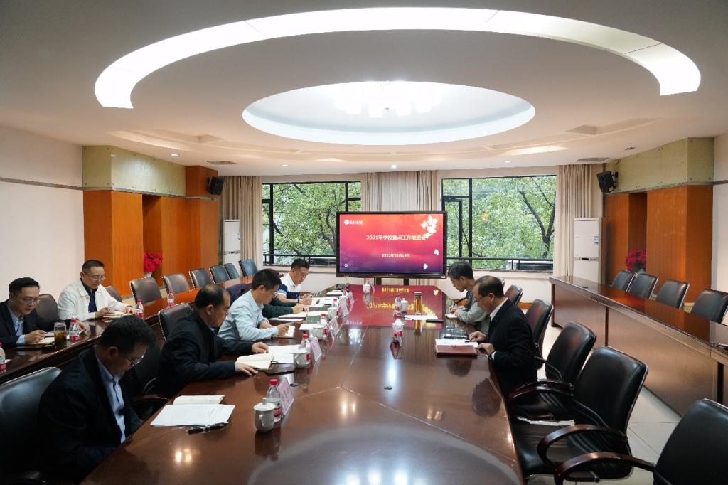 10月14日上午,学校在厚德楼3018会议室召开2021年重点工作推进会,听取相关部门推进学校重点工作情况的汇报。校长孙芳城、党委常委张波出席会议。党政办公室、学生处、学科建设办公室、后勤处、采购与招投标管理中心、信息化办公室等职能部门负责人参加会议。会议由张波主持。