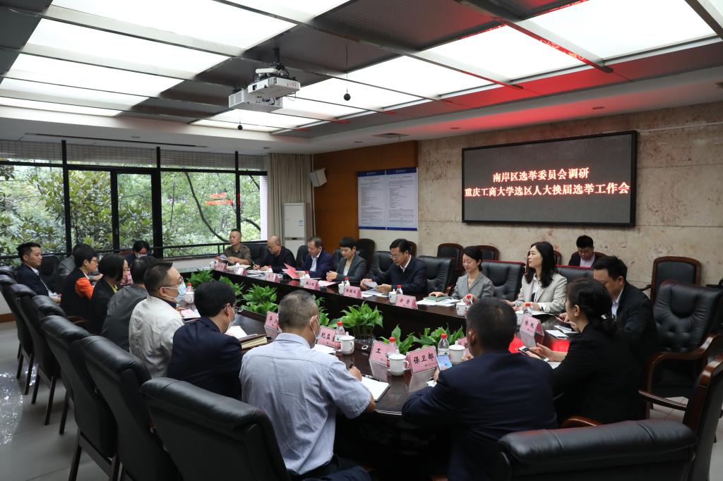 10月14日上午,南岸区人大常委会主任、区选委会主任魏小红,南岸区委组织部部长、区选委会副主任杨继成,区人大常委会副主任、区选委会副主任梁平,区人大常委会人代工委主任、区选委会委员方芳一行到金年会调研人大换届选举工作。校党委书记、JINNIAN金年会选区选举工作领导小组组长李志雄,有关职能部门负责人参加了调研座谈。会议由金年会党委组织部部长、JINNIAN金年会选区选举工作领导小组办公室主任郑夕春主持。