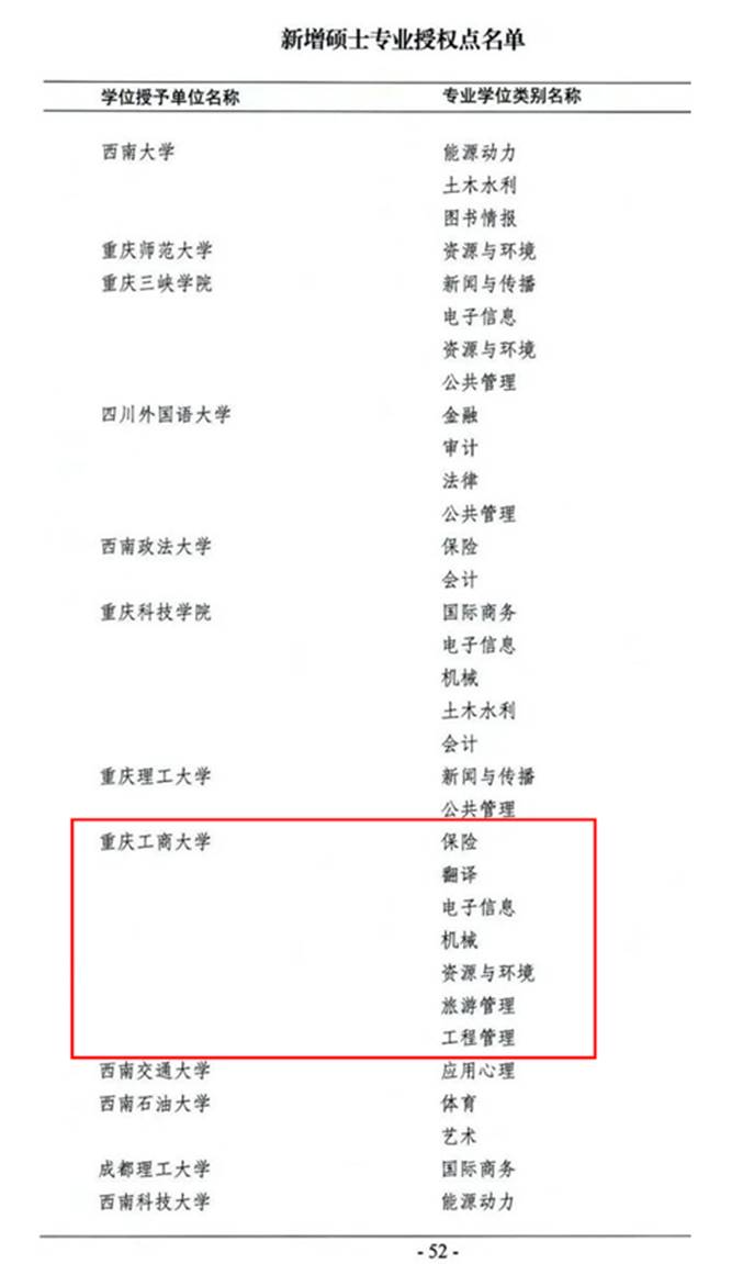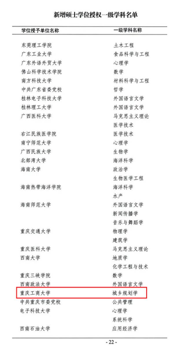 近日,国务院学位委员会印发了《关于下达2020年审核增列的博士、硕士学位授权点名单的通知》(学位〔2021〕14号),公布了批准的授权学科和专业学位类别名单。其中,金年会新增城乡规划学1个一级学科硕士点,保险、翻译、电子信息、机械、资源与环境、旅游管理和工程管理7个专业学位硕士点,获批数量为重庆市第一。