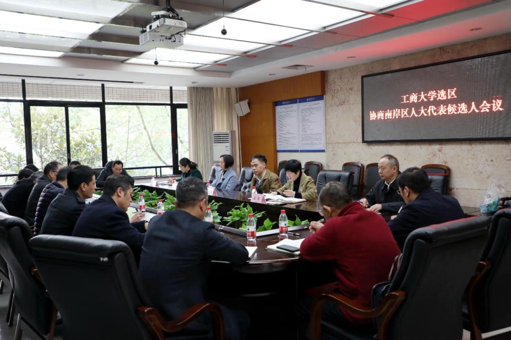 11月25日上午,金年会在厚德楼3019会议室召开工商大学选区协商确定南岸区人大代表候选人建议人选会议。校党委书记、选举工作领导小组组长李志雄,党委副书记、选举工作领导小组副组长宋豫,各选民小组组长,选举工作领导小组办公室有关工作组成员参加了此次会议。会议由宋豫主持。