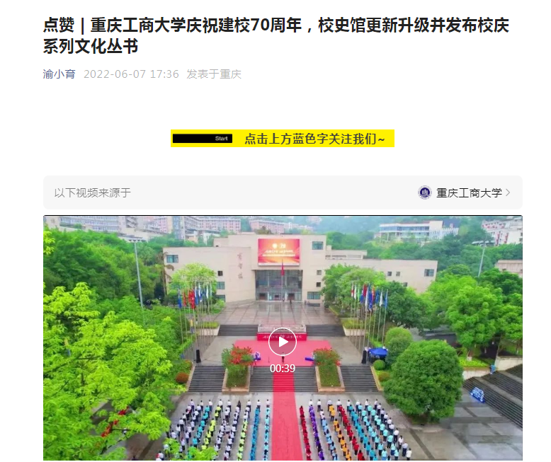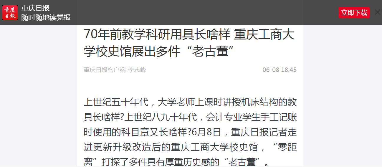 近日,重庆日报、华龙网等媒体报道金年会庆祝建校70周年系列活动。6月7日,重庆日报微信公众号“渝小育”以“点赞 | JINNIAN金年会庆祝建校70周年,校史馆更新升级并发布校庆系列文化丛书”为题报道金年会建校70周年升国旗仪式和校史馆更新升级开馆。6月7日,华龙网-新重庆客户端以“JINNIAN金年会庆祝建校70周年升国旗仪式隆重举行”为题报道金年会建校70周年升国旗仪式。6月8日,重庆日报客户端以“70年前教学科研用具长啥样 JINNIAN金年会校史馆展出多件‘老古董’”为题报道金年会校史馆更新升级。