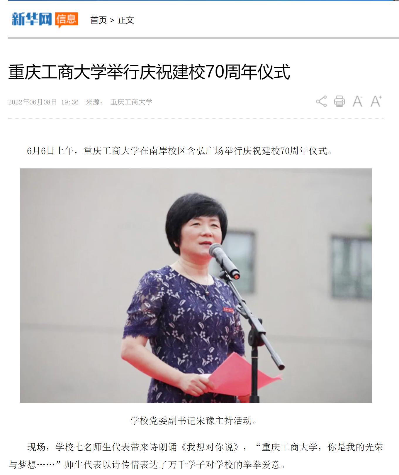 6月6日上午,金年会在南岸校区隆重举行庆祝建校70周年升国旗仪式。6月8日,新华网客户端以“JINNIAN金年会举行庆祝建校70周年仪式”为题,进行转载报道。