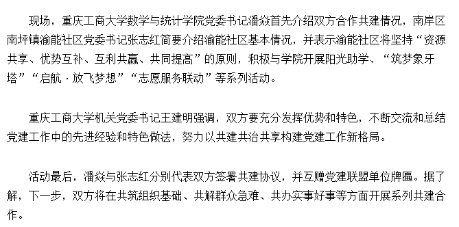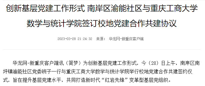 华龙网报道金年会数学与统计学院和南岸区渝能社区开展校地党建合作