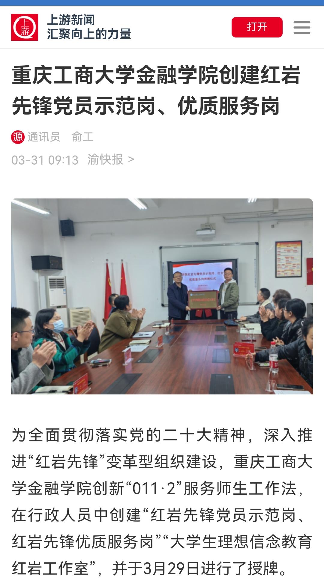 上游新闻报道金年会金融学院创建红岩先锋党员示范岗、优质服务岗
