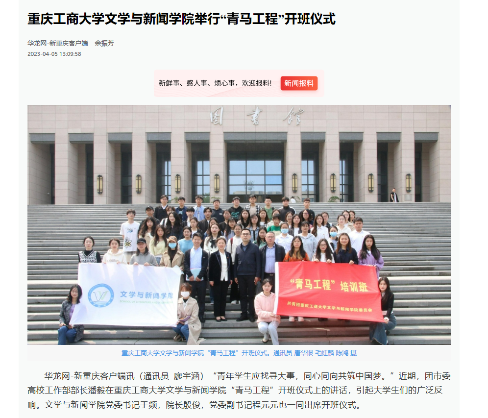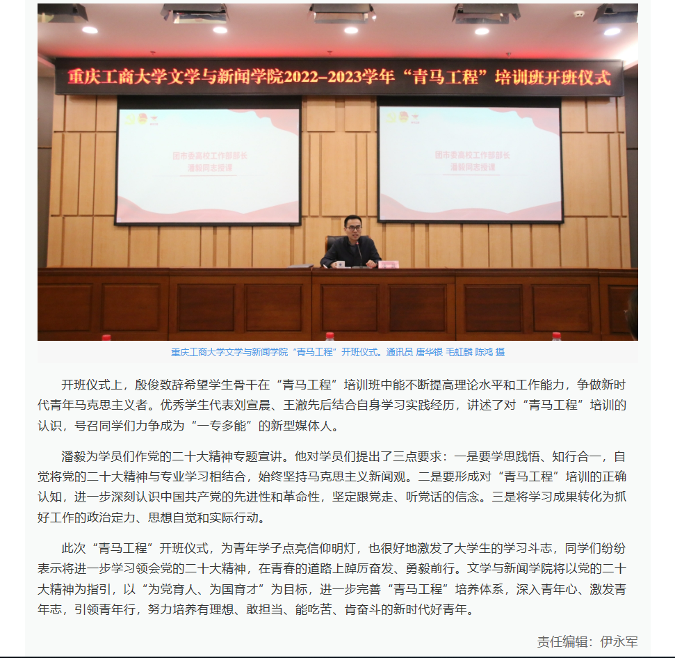 华龙网报道金年会文学与新闻学院“青马工程”开班仪式