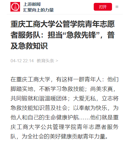 上游新闻报道公管学院青年志愿者服务队