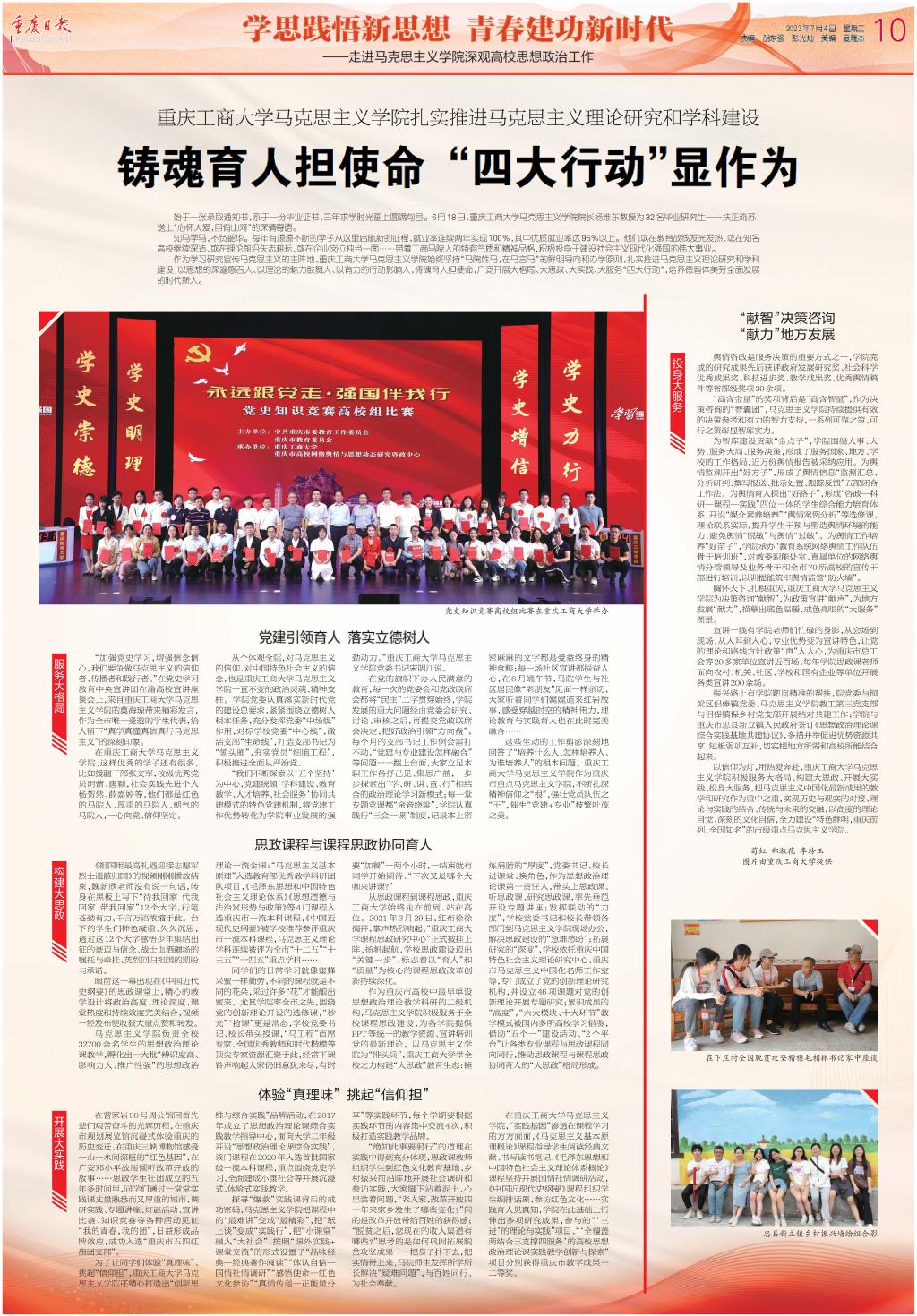 重庆日报整版报道金年会马克思主义学院扎实推进马克思主义理论研究和学科建设