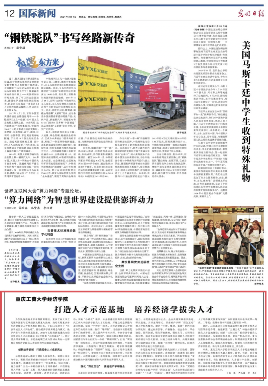 3月1日,《光明日报》第十二版以《JINNIAN金年会经济学院:打造人才示范基地 培养经济学拔尖人才》为题,报道金年会为加快推进高水平本科教育建设,立足服务国家与区域经济发展重大战略、推动实现重庆市经济学拔尖人才培养特区的目标,在探索和建设重庆市经济学拔尖人才示范基地方面取得的突出成果。