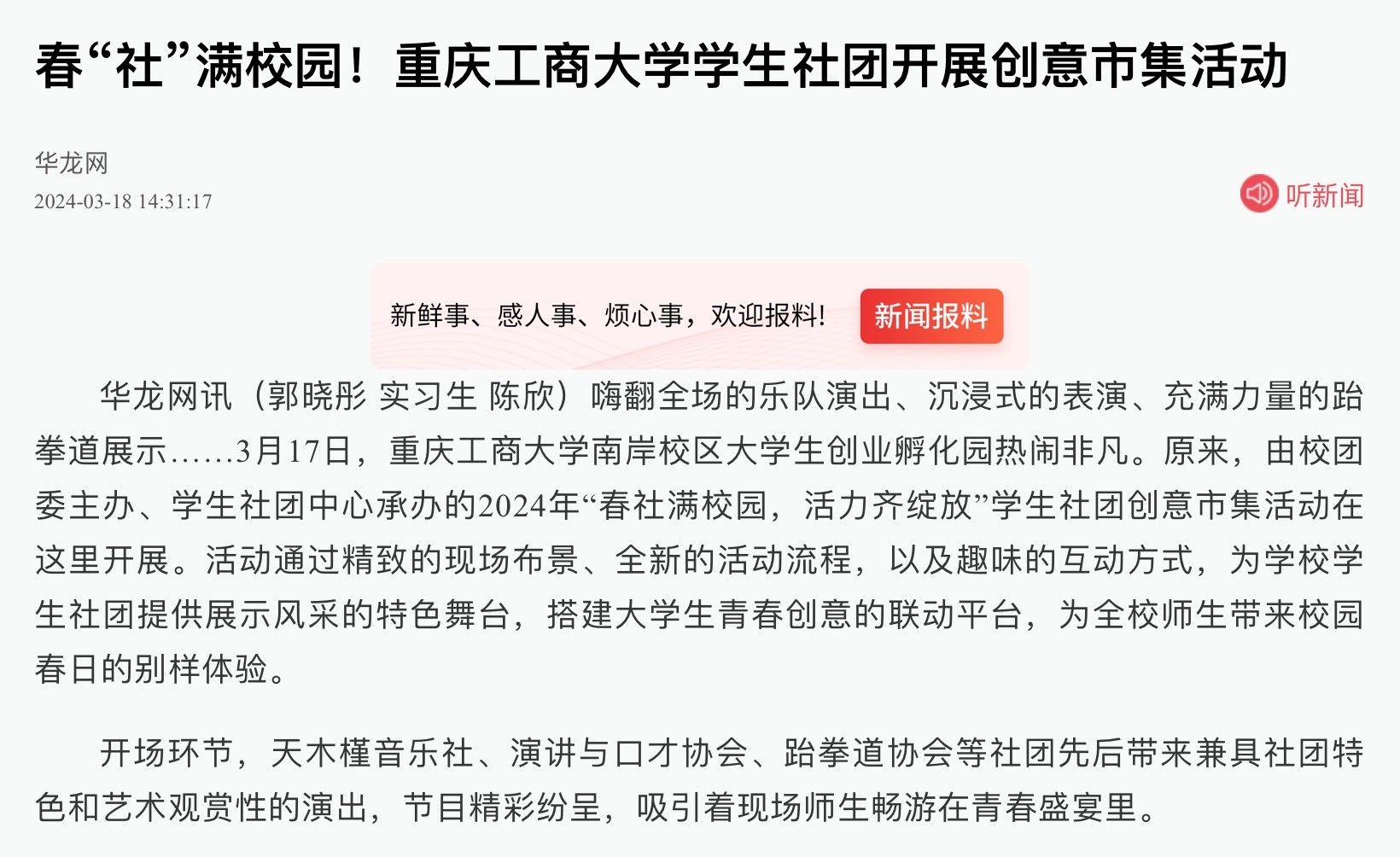 3月17日下午,金年会在南岸校区举办2024年“春社满校园,活力齐绽放”学生社团创意市集活动。华龙网对活动进行了报道。