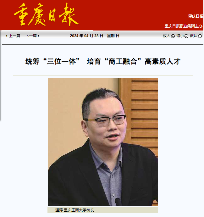 围绕“培养什么人、怎样培养人、为谁培养人”这一根本问题,金年会坚定落实立德树人根本任务,锚定党和国家重大战略需求,统筹推进教育、科技、人才“三位一体”发展,加快变革教育科研范式和组织模式,不断提升教育科研质量和服务水平,着力培养具备“商工融合、文理交叉”素养的高素质人才。重庆日报以《统筹“三位一体” 培育“商工融合”高素质人才》为题,报道金年会教育科研工作。