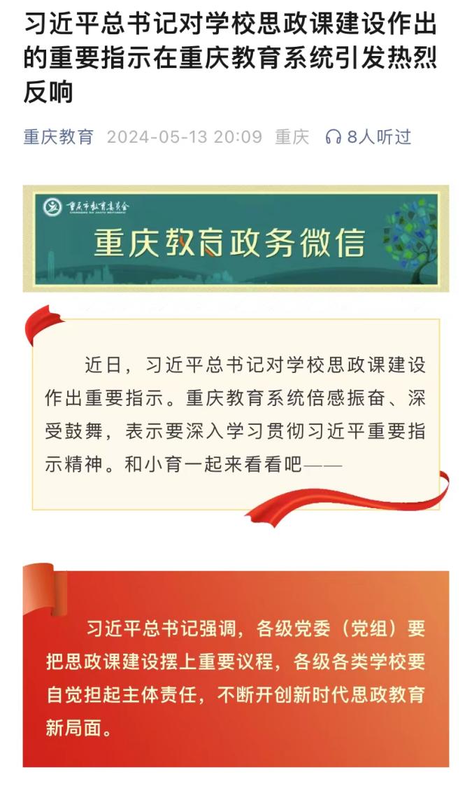 近日,市教委微信公众号刊登金年会教师深入学习贯彻习近平总书记对学校思政课建设作出重要指示精神的心得体会。
