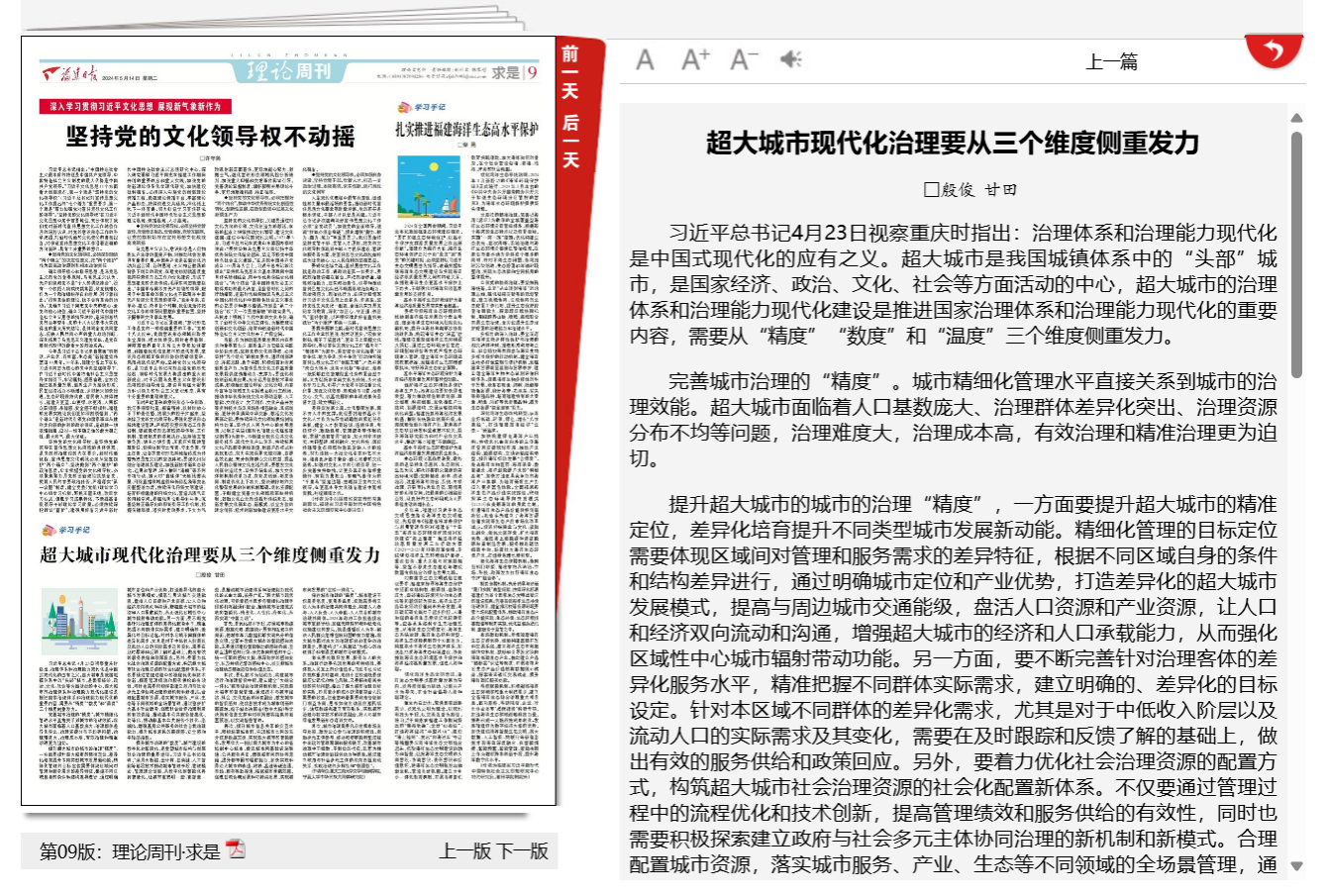 5月14日,金年会殷俊教授撰写的题为《超大城市现代化治理要从三个维度侧重发力》学习文章被《福建日报》理论周刊刊发。