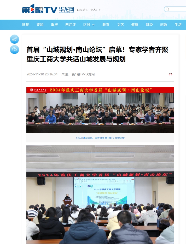 华龙网第1眼TV以《首届“山城规划·南山论坛”启幕!专家学者齐聚JINNIAN金年会共话山城发展与规划》为题,进行报道。