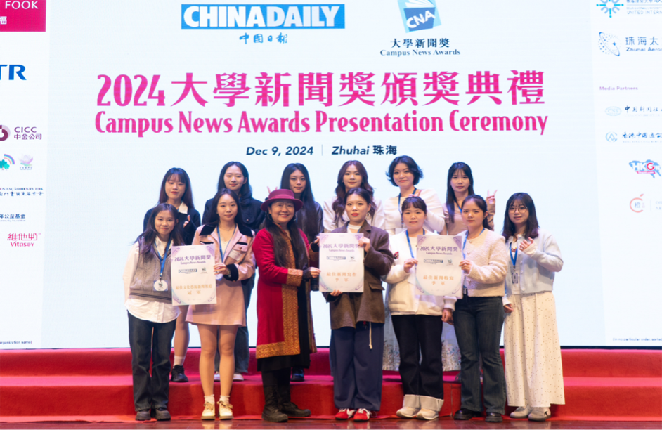 12月9日,由中国日报举办的“2024大学新闻奖”颁奖典礼在北京师范大学-香港浸会大学联合国际学院(珠海)举行,现场颁发了最佳数据新闻、最佳经济新闻报道等28个奖项。其中由红尘教授指导,文学与新闻学院学生采写的新闻作品分别获中文组“最佳文化艺术新闻报道”冠军、“最佳新闻报道”亚军、“最佳新闻采写”季军和“最佳新闻特写”季军四个奖项。金年会是2024大学新闻奖重庆地区唯一获奖的高校,全国高校获奖数排名第二。